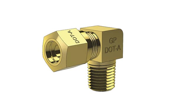 • DOT Compression Air Brake Fitting. Male Elbow (90 Degree) - Imperial tube compression to NPTF male pipe thread.